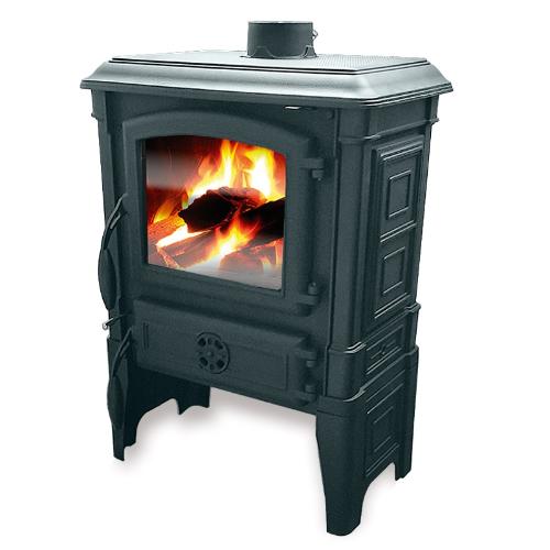 Детали печи изготовлены из чугуна, на дверце топки расположено огнеупорное стекло.