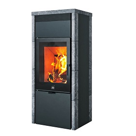 Термоаккумулирующие вставки и крышка из талькохлорита (4 см толщиной) помогают удерживать тепло в помещении, а также украшают печь. Ещё больше тепла для вашего дома благодаря тепловому конвектору, который нагревается от температуры дымовых газов.