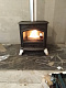 Печь с красивым горением, но прожорлива (нет биметаллического регулятора тяги). Колосник без поворотной ручки, поэтому ворошить дровишки приходится кочергой.