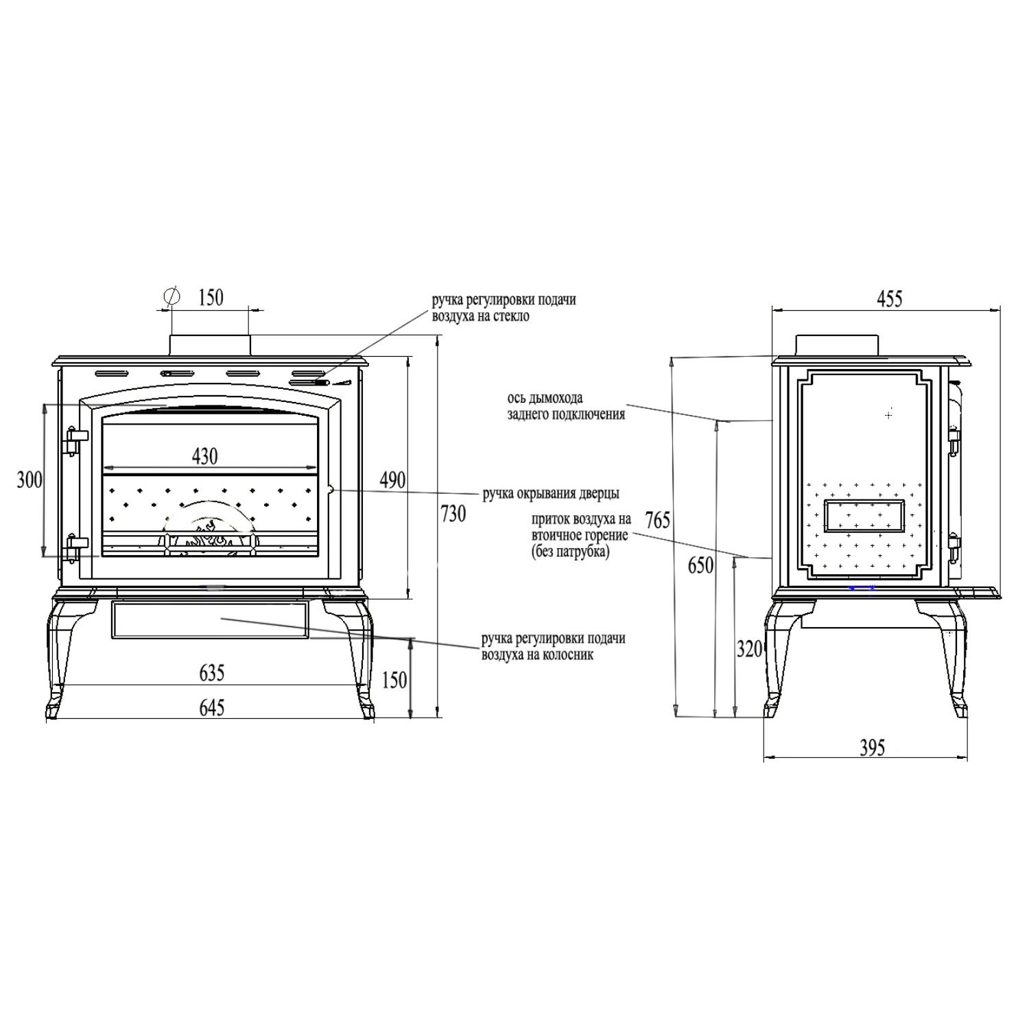 - Диаметр дымохода, мм 150