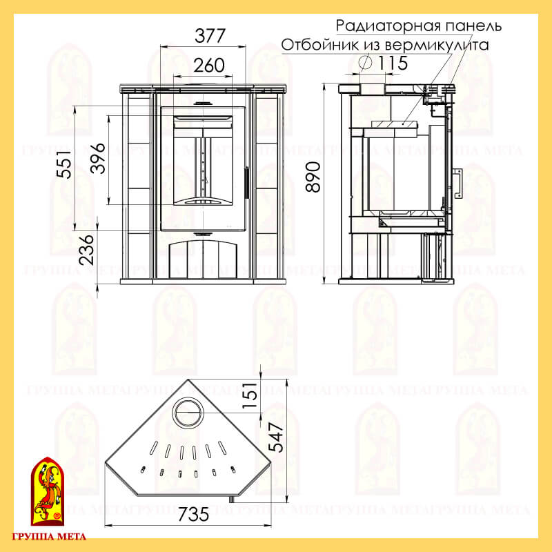 Инструкции, чертежи, документы - Печь камин Мета Одер угловой (без плиты)