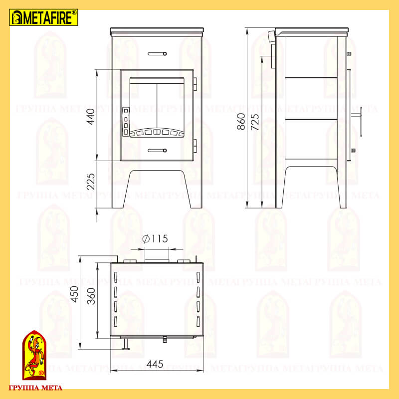 - Диаметр дымохода, мм 115