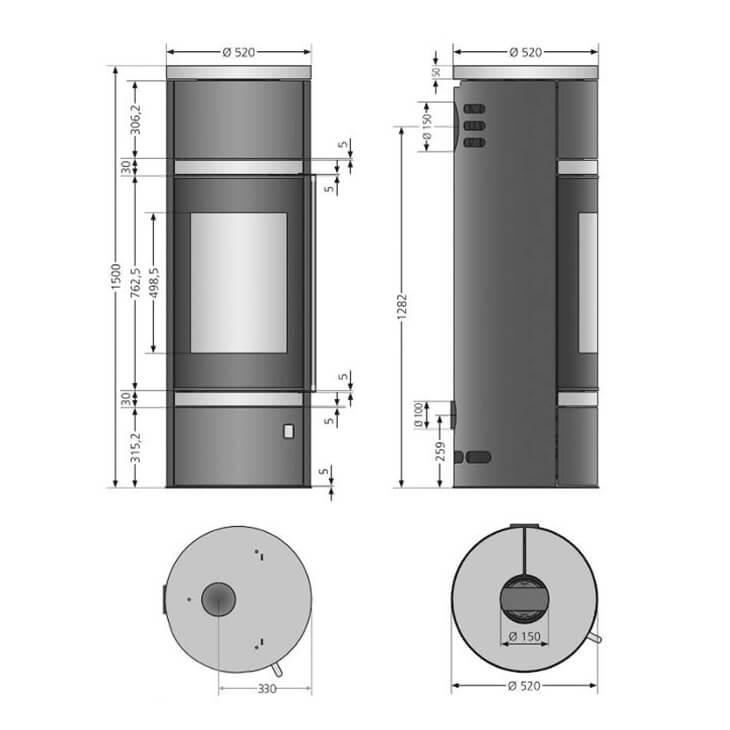 - Диаметр дымохода, мм 150