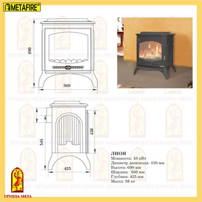 Инструкции, чертежи, документы - Печь-камин Мета Лион