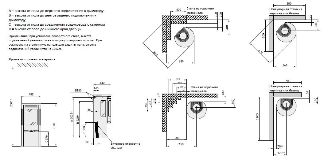 - Выход дымохода Сверху/Сзади