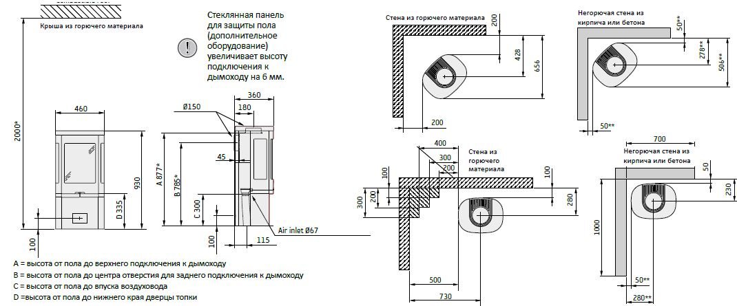 По умолчанию печь имеет верхнее подключение дымохода. При заднем подключении может понадобиться верхняя заглушка к печи. Приобретается отдельно.