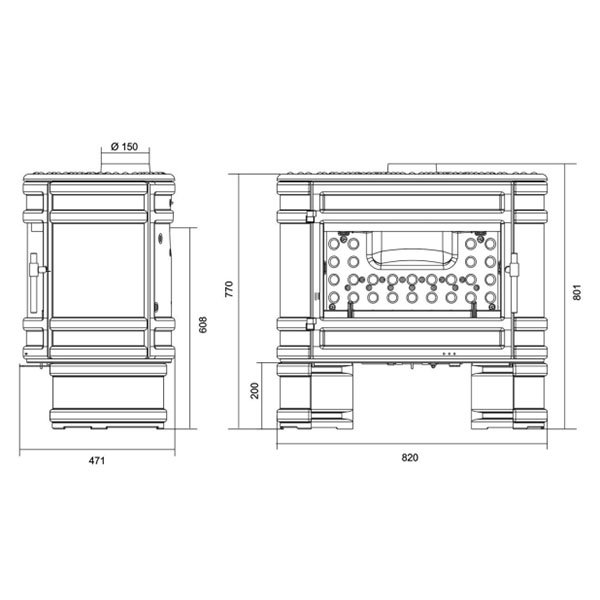 - Диаметр дымохода, мм 150