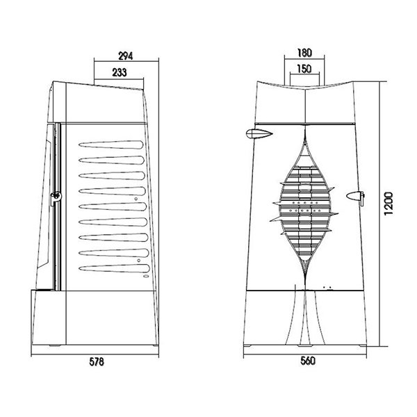 высота: 1200 мм, ширина: 560 мм, глубина: 578 мм.