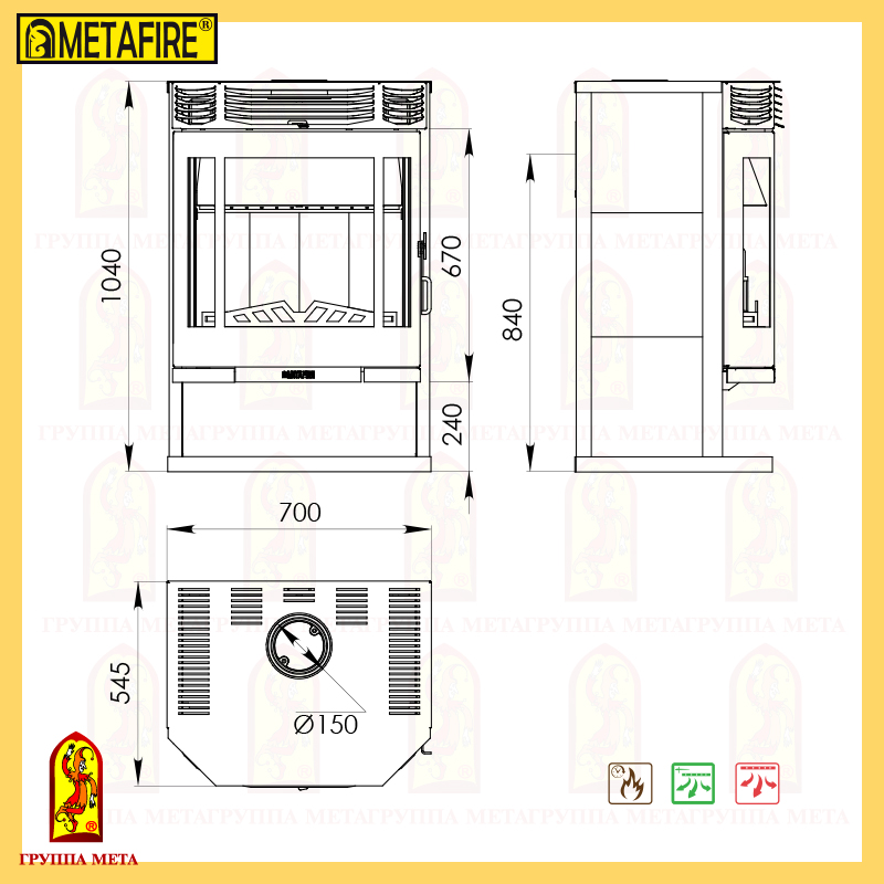 - Диаметр дымохода, мм 150