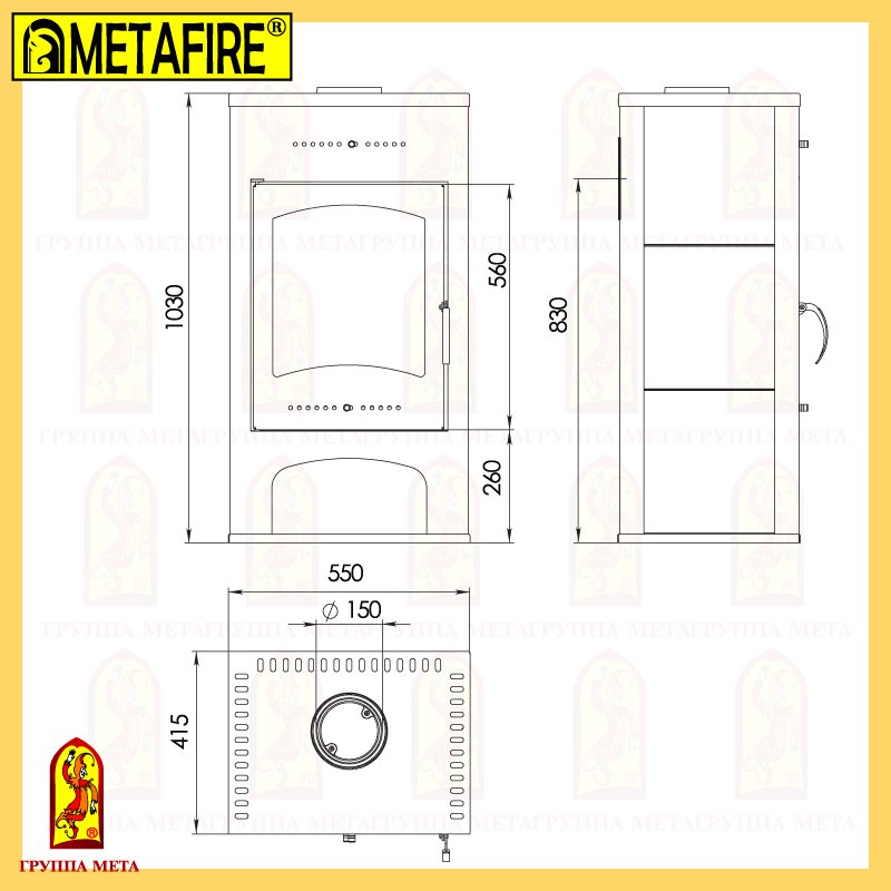 - Диаметр дымохода, мм 150