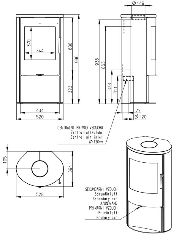 Инструкции, чертежи, документы - Печь камин Romotop Alpera E 02 камень