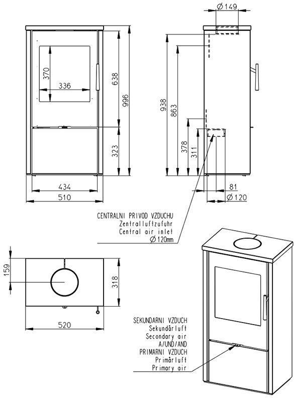 Инструкции, чертежи, документы - Печь камин Romotop Alpera F 02 камень