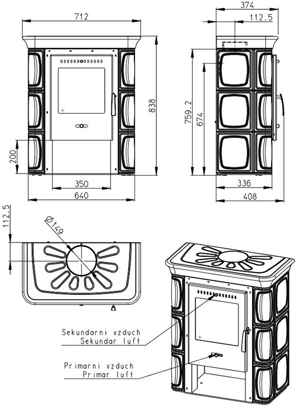 Инструкции, чертежи, документы - Печь камин Romotop Broto керамика