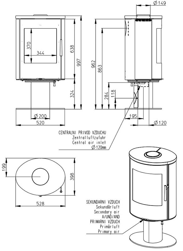 - Диаметр дымохода, мм 150