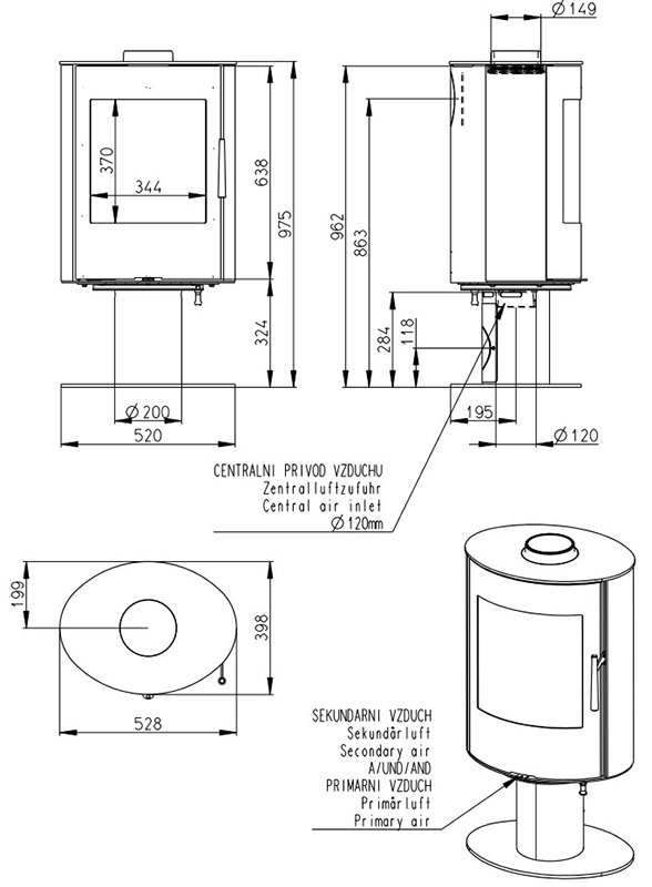 - Диаметр дымохода, мм 150