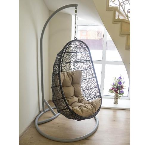 Прочное и долговечное подвесное кресло с металлическим каркасом и плетением из искусственного ротанга — это идеальное решение для создания комфортной зоны отдыха в вашем доме или саду.