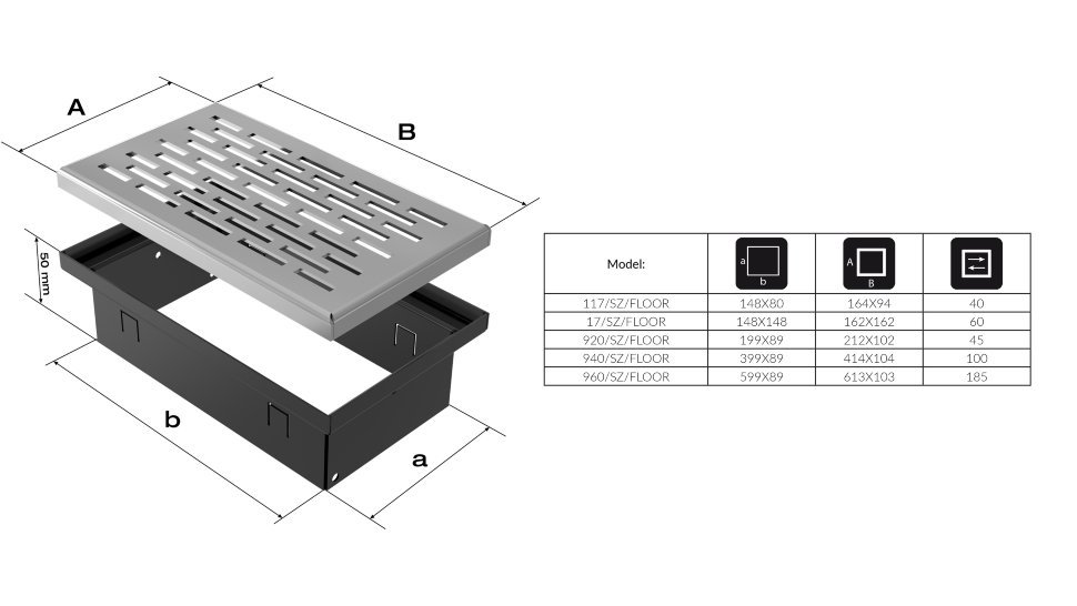 Решетка Kratki напольная стальная 17х17