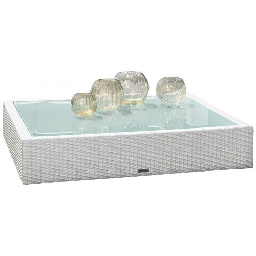 Столешница кофейного столика Bahia толщиной 10 мм выполнена из прозрачного закаленного стекла. Столешница также может быть выполнена из лакированного закаленного стекла или из керамики с отделкой под мрамор.