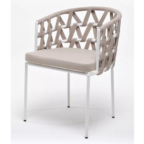 Стул плетеный из роупа 4SiS Диего, каркас из стали белый муар, роуп бежевый круглый, ткань бежевая 15052