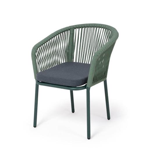 "Марсель" стул плетеный из роупа, каркас алюминий RAL6036 муар, роуп зеленый (4204) круглый tex, ткань темно-серая 027