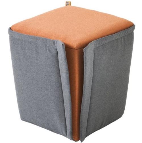 Съемное покрытие Finferlo дает возможность заменить, почистить или просто менять цвета пуфа. В углах пуфа два больших лацкана, подобно горловине куртки, указывают начальную точку двух петель, которые, сползая вниз по периметру объекта, позволяют снять покрытие или открыть ее достаточно просто, чтобы создать пространство для журналов или аксессуаров.