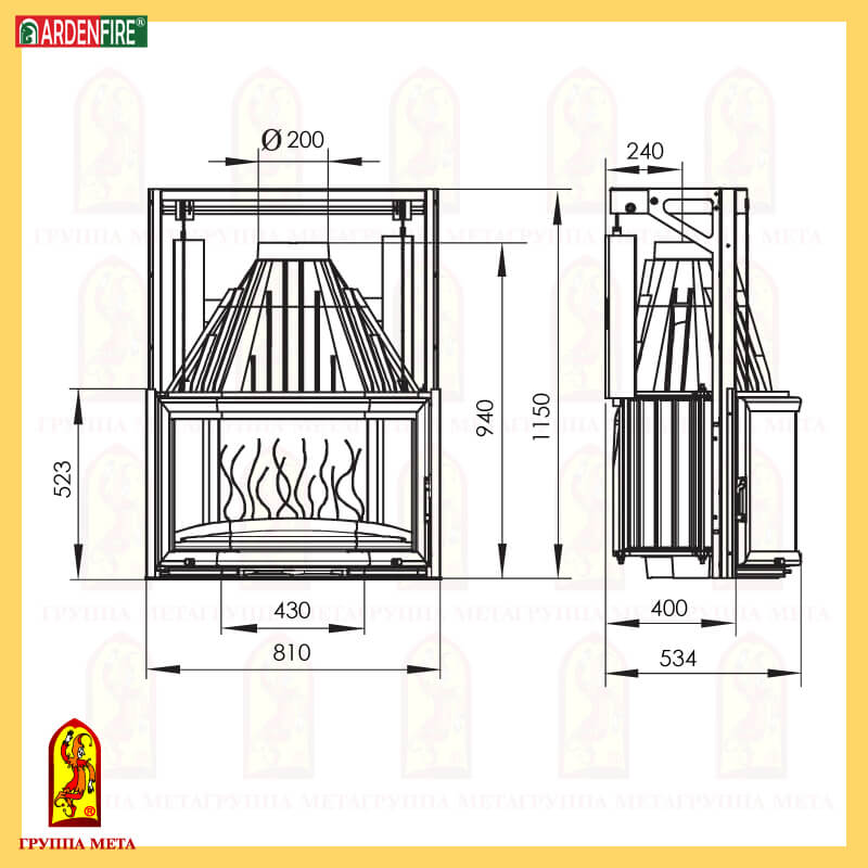 Инструкции, чертежи, документы - Каминная чугунная топка Мета Призма 850 П