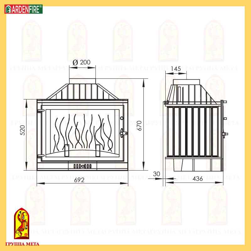 Инструкции, чертежи, документы - Чугунная топка Meta ArdenFire Promo 700