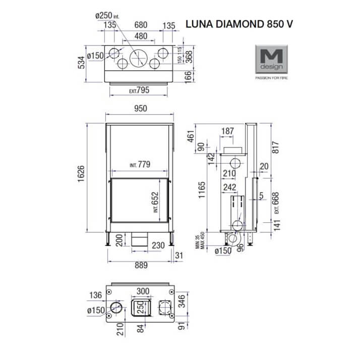 Инструкции, чертежи, документы - Каминная топка M-design Luna 850 V Diamond (Луна 850 V Даймонд)