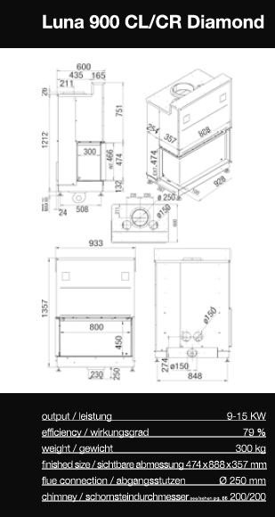 Инструкции, чертежи, документы - Каминная топка M-design Luna 900 CL/CR Diamond (Луна 900 CL/CR Даймонд)