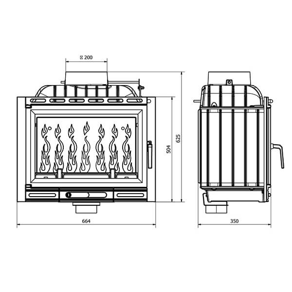 Регулировка шиберной заслонки позволяет контролировать интенсивность процесса горения. Блокиратор каминной дверцы ограничивает её открытие при закрытом положении шибера, что исключает возможность попадания дымовых газов в помещение.