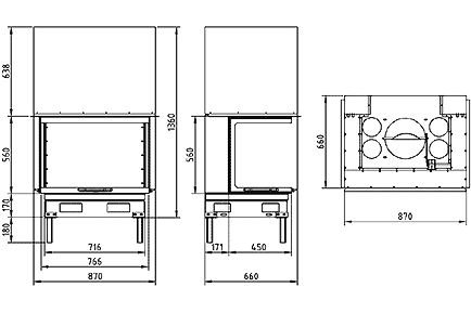 Инструкции, чертежи, документы - Каминная топка Axis AX-3V 900 PC-GF