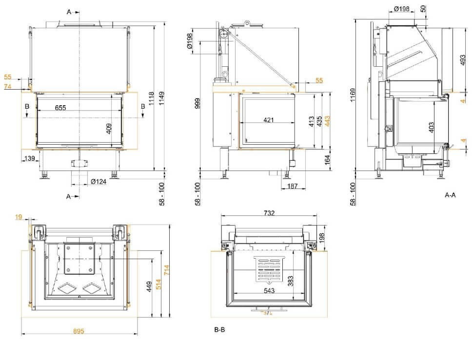 Инструкции, чертежи, документы - Каминная топка Brunner Panorama-Kamin s-fire 42/42/66/42