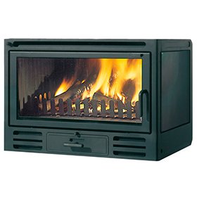 Небольшая чугунная топка с фронтальным жаропрочным стеклом. Имеет автоматический шибер, выходы для разводки прогретого воздуха, устройства подачи воздуха извне.