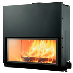 Топка закрытого типа с футеровкой очага из керамики ECOKERAM с высоким КПД и системой «чистого стекла». В автономном режиме может дать тепло нескольким смежным помещениям. Современный дизайн, металлический кожух. Топка способна давать тепло четырем смежным помещениям с помощью специальной системы разводки горячего воздуха.