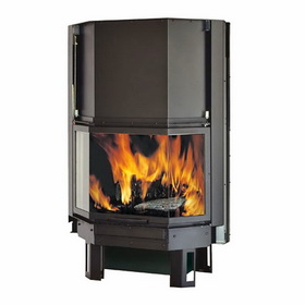 Топка с большим призматическим стеклом и невероятно плавным подъемным механизмом. Позволит созерцать огонь во всей его красоте. Корпус выполнен из стали, очаг с чугунной футировкой. Возможна разводка воздуха по комнатам, что позволяет эффективно обогревать даже очень большое помещение.