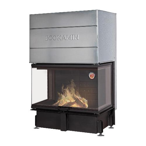 Каминная топка ЭкоКамин Дельта 1000 PВ три стекла подовое горение принтинг черный шамот