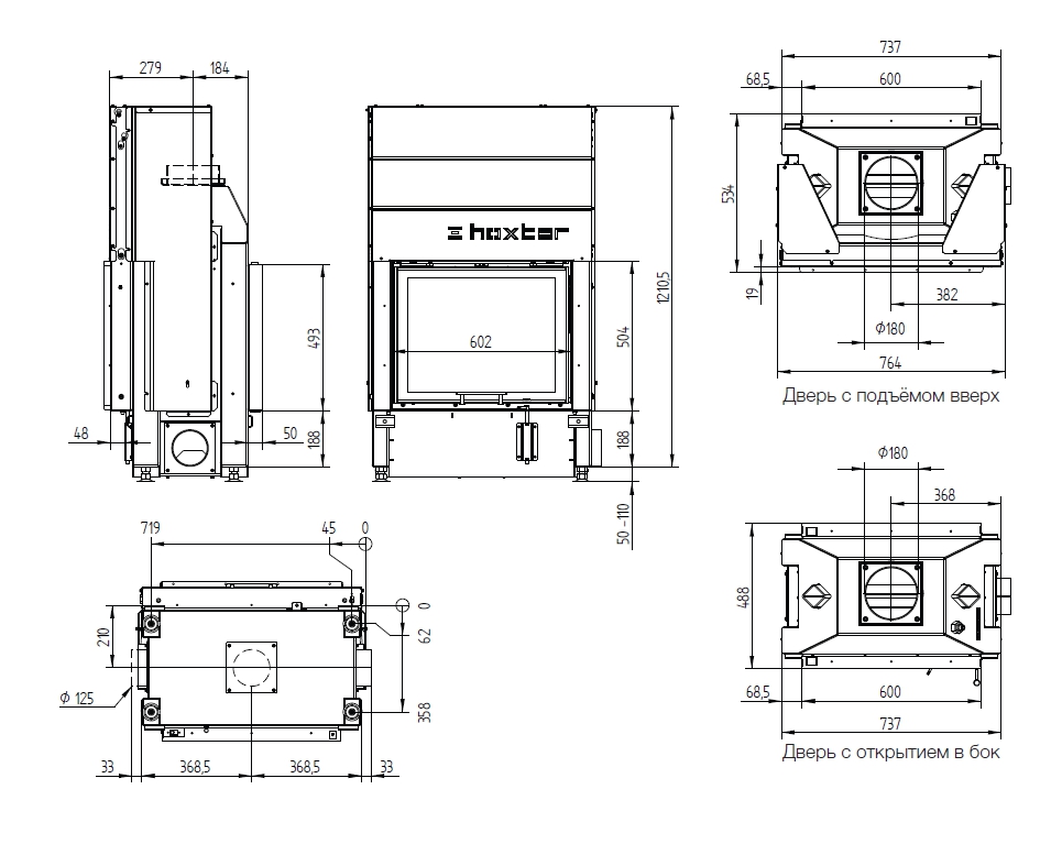 Инструкции, чертежи, документы - Каминная топка Hoxter Haka 60/50ST петли слева / справа