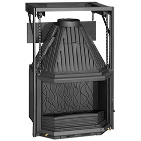 Топка оснащена подъемным механизмом дверки и имеет большое призматическое стекло.