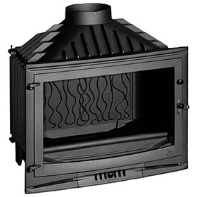 Чугунная топка, прямое стекло, оригинальный дизайн, боковое открывание дверцы.