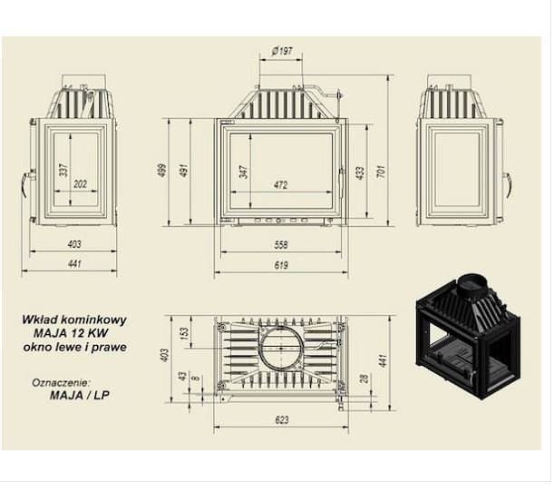 Инструкции, чертежи, документы - Каминная топка Kratki Maja/LP (стекло слева-справа)