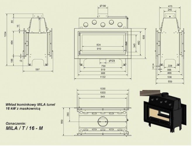 Инструкции, чертежи, документы - Каминная топка Kratki Mila/T (тунель)