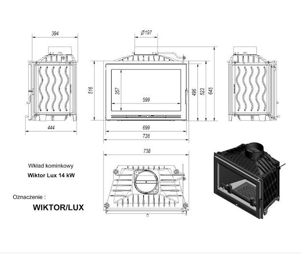 Инструкции, чертежи, документы - Каминная топка Kratki Wiktor/LUX