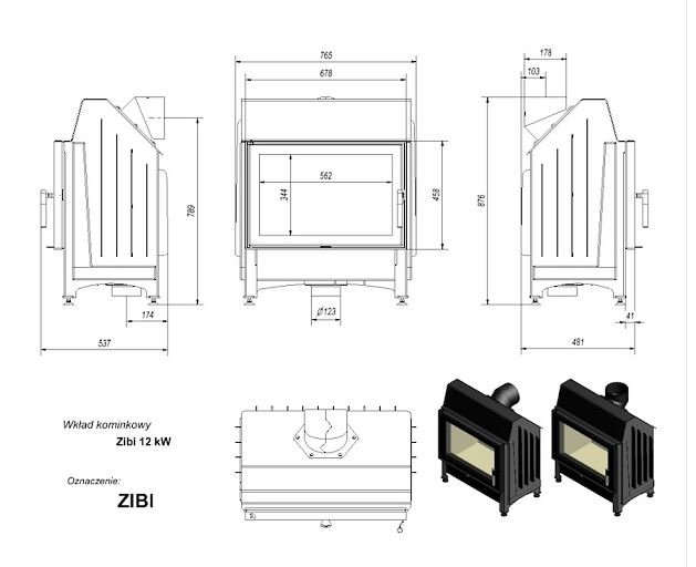 Инструкции, чертежи, документы - Каминная топка Kratki Zibi (керамич. футеровка)