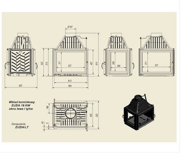 Инструкции, чертежи, документы - Каминная топка Kratki Zuzia/LT (тунель, стекло слева)