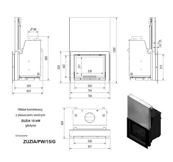 Инструкции, чертежи, документы - Каминная топка Kratki Zuzia/PW/15/G/W (гильотина)