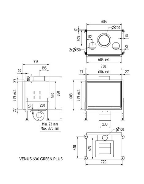 Инструкции, чертежи, документы - Каминная топка M-design 630 Venus Green Plus (Венус 630 Грин Плюс)