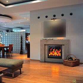 В наших салонах вы можете увидеть камины в действии — с настоящим, живым пламенем.