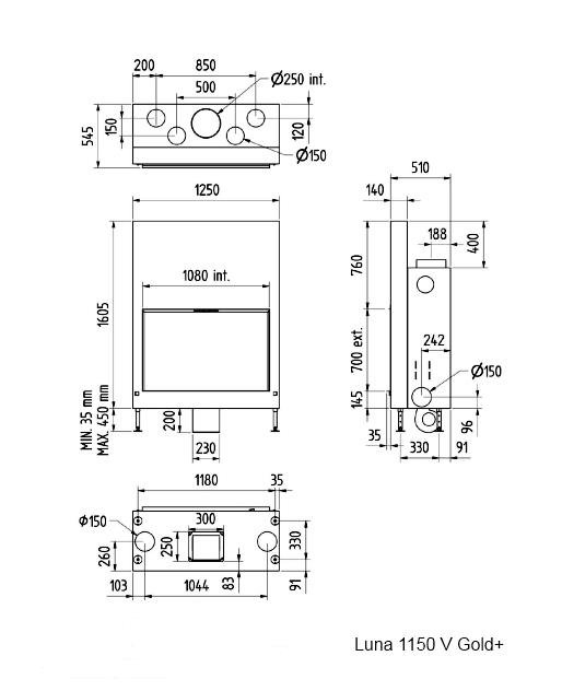 Инструкции, чертежи, документы - Каминная топка M-design Luna 1150 V Gold+ (Луна 1150 V Голд+)