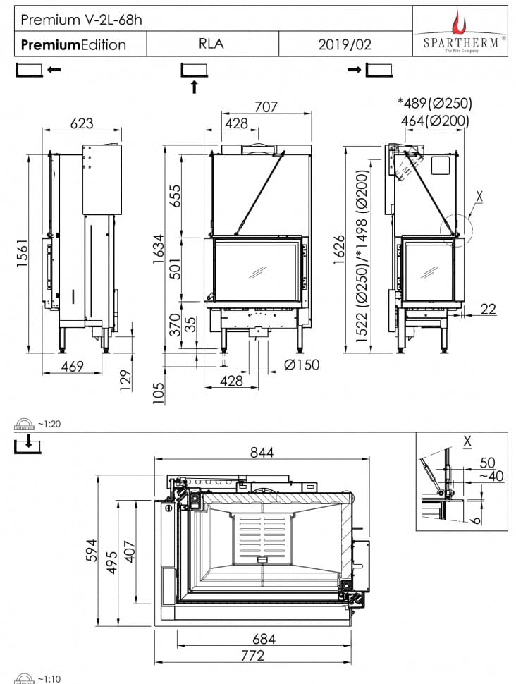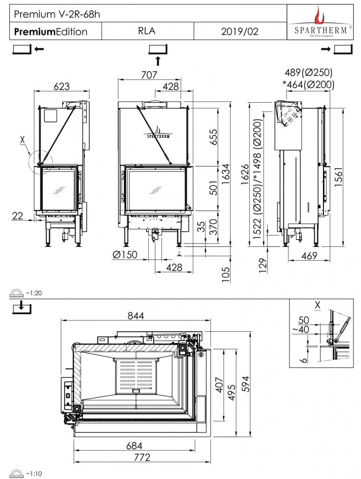 Инструкции, чертежи, документы - Каминная топка Spartherm Premium V-2L/R68h