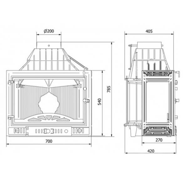 - Диаметр дымохода, мм 200